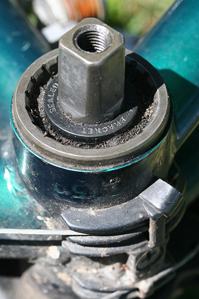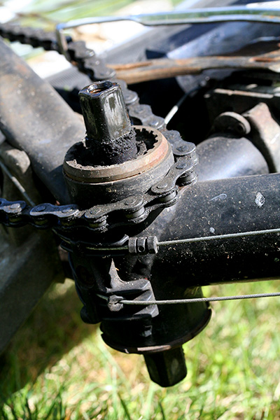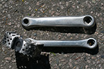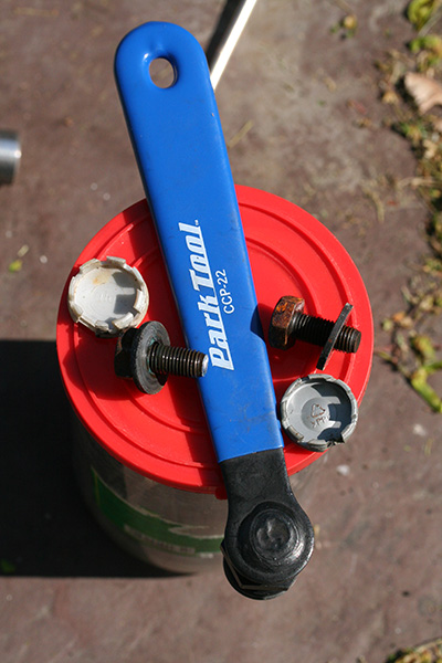 first thing i did when i arrived in belmont was to remove the damaged left crank arm from my trek 800 using the crank puller (park tool CCP-22). i threaded the head of the puller into the crank arm but when i went to turn the handle to push off the crank arm it wouldn't budge. for a while everything was stuck, but after some banging, it loosened up and i was able to unthread the puller. after adding a few drops of triflow and trying again the handle finally budged and with a few simple turns the left crank arm easily came off. i then did the same to the left crank arm of the trek 720; that one came off without any resistance.