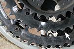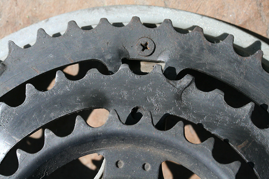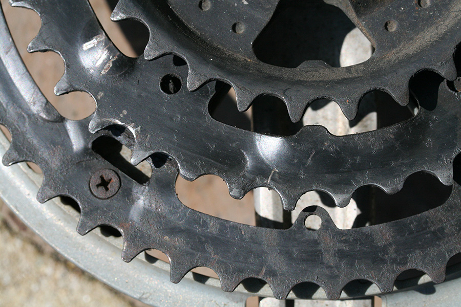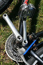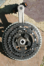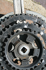 i may not need to replace my crankset just yet (even though some of the teeth on the chainrings are seriously worn down) but it'd be nice to change out the sealed bottom bracket. the important thing was to find out the spindle length and to do that i had to remove the crankset, both left and right side. having down it earlier, this second time around was much easier. it was still difficult to get an exact measurement and i estimated it to 120mm. a check of bottom bracket sizes revealed no 120mm; the closest are 118mm and 122.5mm. the only way to find out absolutely is to remove the old bracket completely, and to do that i'd need a bottom bracket tool. so i ended up buying one online, hopefully arriving close to the end of next week.