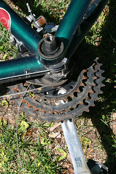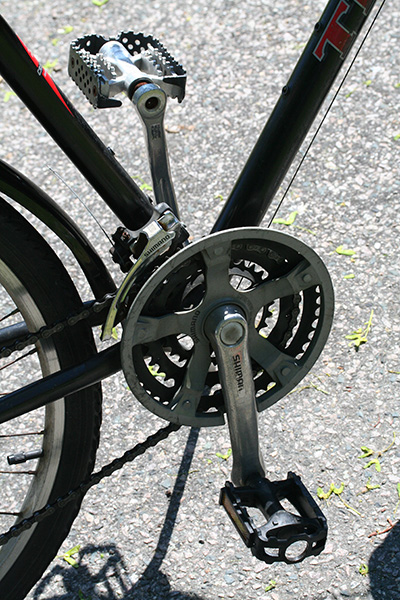 the trek 720 also has unusually small chainrings, the largest sprocket having 38 teeth (i could be wrong). there's probably some kind of method to this madness; smaller rings are better for climbing hills.