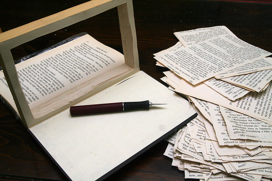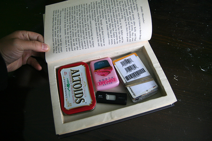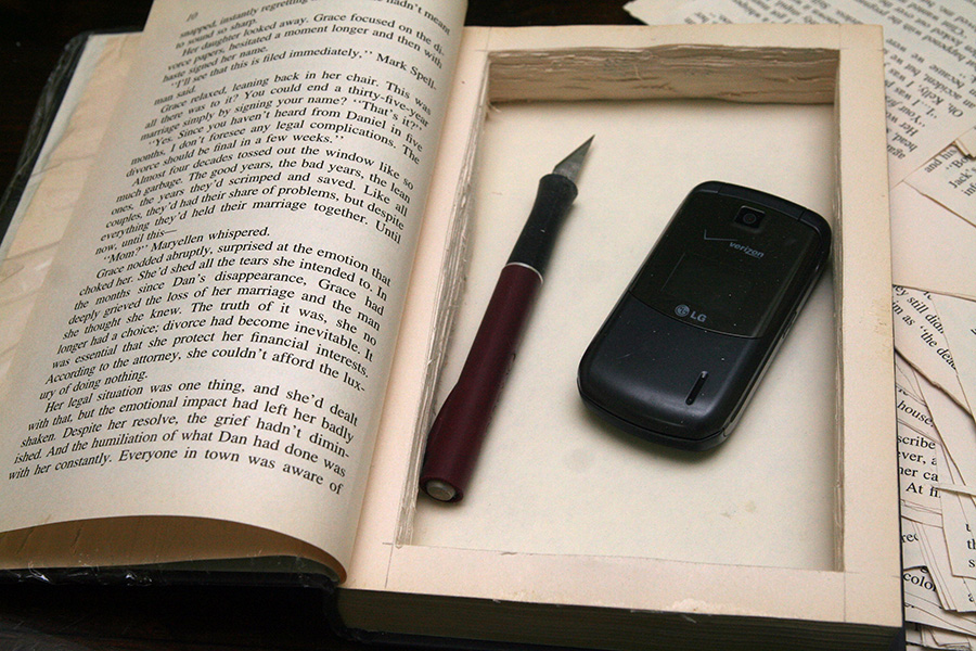 in the morning i examined my finished hollow book. it didn't turn out so bad given it's my first time making one. i could've done a better job cutting the pages as the inner edges aren't the straightest. it'd also be nice to have some sort of magnetic clasp and i read some directions online on how to do that. it has a depth of 7/8", not sure what i'm going to put in it. it'd make a nice novelty box for a gift. i'll be on the lookout for discarded hardcover books, the next one i'll make will also have a magnetic closure.