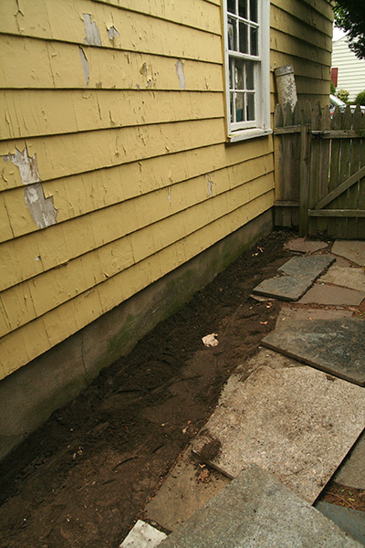 so how does one apply termidor? through trenching and then pressurized injections. they first dug a shallow trough (about 6" wide) along the edge of the house. then using a tool that looked like a long metal needle with a two-handed handle, they injected a solution of water and termidor every 6" several feet into the ground. on the western side of the house we had some perennials that were in the way that we dug up and relocated. even then, a few still got trampled, casualties of the war against termites. we had a patch of chinese chives that we dug up, so that's edible. along the southeastern corner of the house (directly behind the attached garage) is another strip of vegetation, mostly chinese chives, a few endives (that we grow for the chicory-like flowers), and a large patch of lovage. earlier my father had already dug up some lovage (to be transplanted to my great uncle's garden). these are edible plants but we decided to sacrifice them.