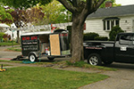 the first person to show up was mark, who looked like a late middle-aged tough guy with a cross wrist tattoo and a studded earring but was actually very friendly. he arrived in a conspicuously marked truck pulling an equally conspicuously marked trailer; no way to hide the fact that we have a termite problem from the neighbors. since mark wasn't the guy who originally did the inspection, i gave him a quick outline of the problem areas. i thought it was just him, but a few minutes later his partner showed up, a man named ron who was the staff entomologist.