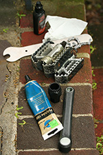 i was in a hurry to return home because i'd still have time to take my bicycle to the local bike store (LBS) to see if they could loosen up my bottom bracket for me with their special tools.