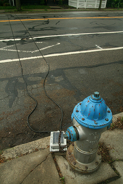 numerous utility companies do work all over town. but today i actually stopped to investigate because i sort of had an inkling that maybe they were monitoring car traffic from the way the tubes were placed. they went to a heavy-duty metal box with a solar collector, conspicuously anchored to a fire hydrant to prevent theft. could this be some sort of speed trap?