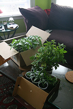 with the temperature near optimal for next week, i decided to finally shut down my grow closet and move all my plants outside. whether or not i plant them right away is a different story, but they'll be living outside now, getting there free nourishment from the sun. i kept a few plants for myself but packed the rest in boxes to be taken to belmont to be sorted.