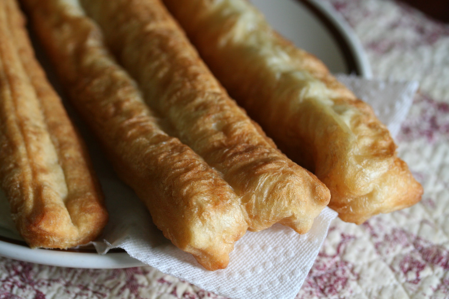 after dropping off my mother and me in belmont, my father went to the cafe with the supplies. my mother made a late lunch of bacon and youtiao. when my father finally returned home, we did some garden work in the backyard.