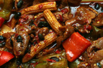 it was already drizzling a little bit, but light enough that it didn't even soak my clothes. i brought home some food my mother picked up from the cafe (strapped to the rear rack of my fuji with bungie netting) which i later had for dinner.