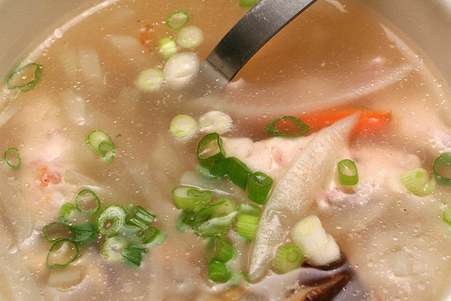 my mother made some squid nugget soup which in itself was already enough; but on top of that there was also a dish of braccoli, some thin-sliced pork with special soy pasta dipping sauce, some chicken, and some pan-fried raviolis.