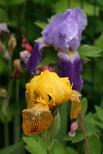 i like how there are so many different varieties of irises growing in the western garden: 2 rhizome irises (one deep purple, one light violet), and 1 bulb iris. the 2nd year snapdragons look like they're preparing to bloom.