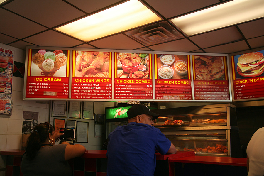 an interesting thing about this place is they also sell cigarettes, and a man ahead of me in line ordered some newports along with his chicken. a fat man in a suit came into the store and shouted, "how much for fries?" the man behind the counter ignored him. "you speak spanish?" the suited man shouted, maybe confusing middle eastern for hispanic.