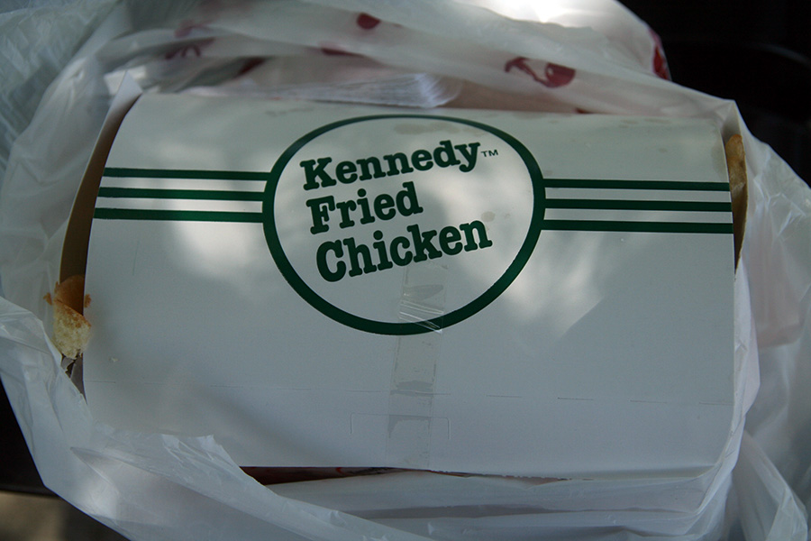 piece of green real estate, an island surrounded on all sides by busy traffic. kennedy fried chicken was actually pretty good, but maybe it's