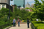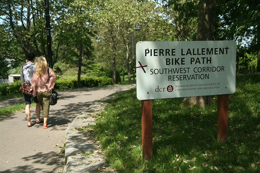 back on malcolm x boulevard, i returned to the southwest corridor bike path. there was a lot of well-dressed pedestrians around roxbury crossing, and later i realized it was graduation day for roxbury community college. i debated whether to stop and get some photos of folks in their fancy duds but decided to continue on my trip to the arnold arboretum since i still had a lot to do.