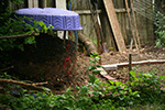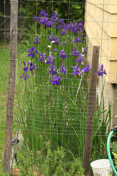 in gardening news, i helped my father install a new fence post in our honeysuckle wall on the western side of the house. the vines have grown so thick that it was impossible to remove the old post so my father ended up putting the new one right next to the old.