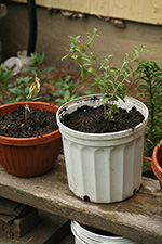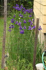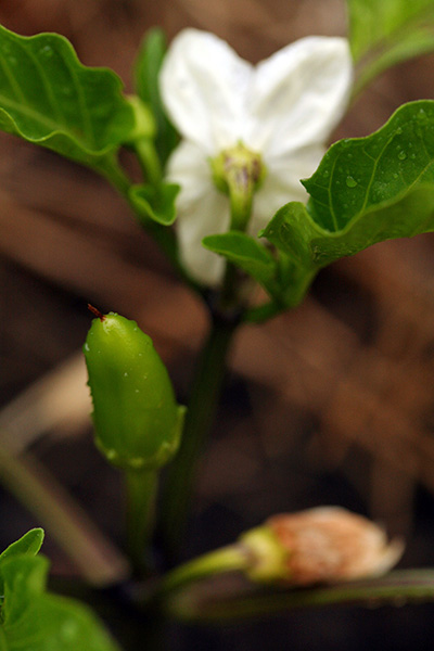 we also repotted all his russian silverberries, a bottom layer of manure (which we got from home depot), a middle layer of compost, and a top layer of garden soil. before it started drizzling, we covered the compost bin with an overturned plastic kiddie pool. while planting scallion sprouts, my father accidentally beheaded a snapdragon flower stalk when he lifted up a protective mesh cage without looking first. i put it in a jar of water, hoping maybe to see a few flowers at least. critters seem to be ransacking the garden when no one's looking: squirrels dig in the raised beds, slugs or some other bugs have eaten all the asparagus beans and working on the radish leaves, and something (rabbit?) snipped my elm tree sapling in half (it did the same to a japanese maple sapling).