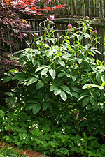 the peonies are growing a good spot (for the time being), with a japanese maple on one end and a quince bush on the other, with a carpet of wild strawberries (a few new domesticated ones).