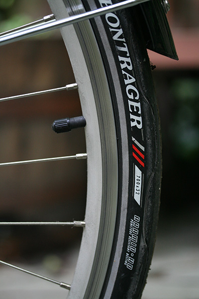my original plan was to temporarily lock the allant to a signpost, ride my trek home, then walk back to retrieve the new bike. but i just couldn't resist the allant, so i rode that bike home instead, and walked back to retrieve my old trek (no danger of theft whatsoever). the seat was a little tall and i didn't have any tools to adjust it but i rode strategically, stopping so i could put my foot on the curbstone. it was a great ride, none of the rattling or feeling of pulling some tremendous weight on my trek 800. even rolling over uneven roads didn't seem to hurt as much on these 700x32c wheels.