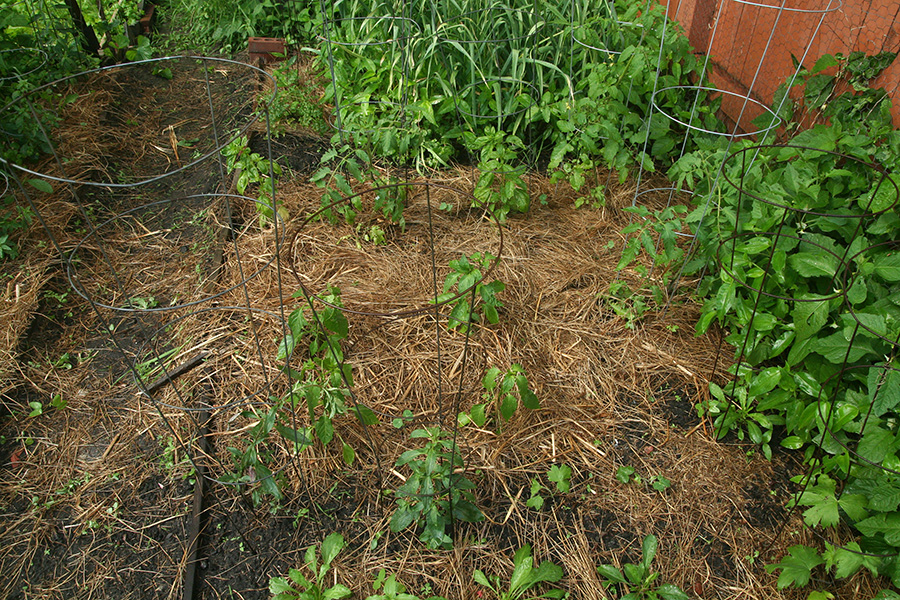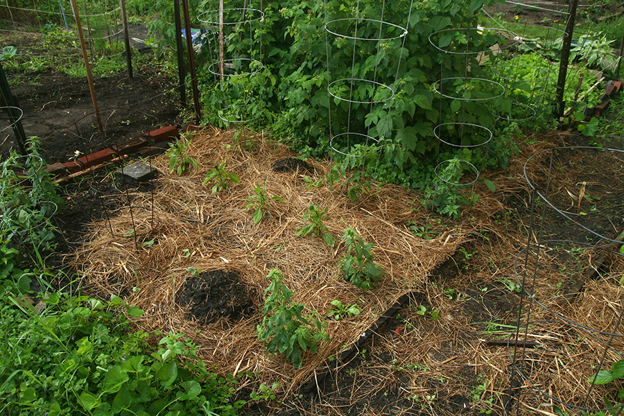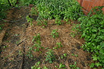 as for my own garden, some of my squashes have sprouted by not all of them. a few nasturtiums have appeared as well, poking through the mulch. the areas where i wasn't able to put down any mulch had some weeds, a combination of crab grass, wild morning glory, escaped chinese lanterns, and some unknowns. i pulled what i could by hand before watering my garden (despite the rain later).