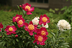 i met jenny in the garden, who was a few plots away. she asked if i could help her move a concrete block in her garden. i figured she'd help as well but she made me carry it by myself while she lead me to the other side of the garden to find a place to put it. it was a square-shaped concrete donut and it must've weighed 60 lbs. at least. i'll probably feel it in my back tomorrow. jenny had the plot with the lovely peony bush in the corner; however it wasn't so lovely this season as all the leaves were covered in this white mildew. it didn't affect the flowers though, big white ones with surprisingly little scent, with a few spots of red in the center. she said last year she had 2x as many flowers so the mildew definitely had an effect.