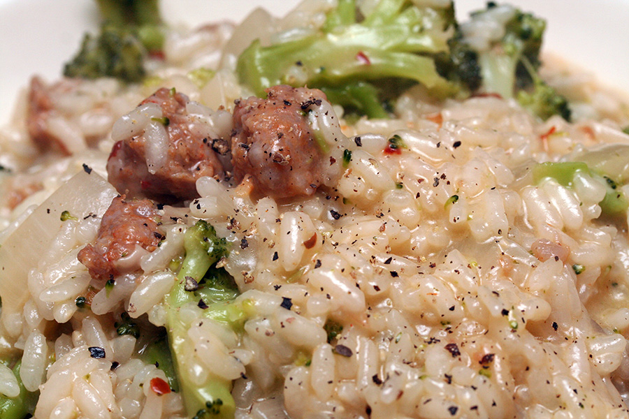 i made risotto for dinner. it takes more than half an hour to make but the effort is totally worth it as i'm left with fine risotto. my only regret is the leftover is never as good as the fresh from the stove. it's completely filling too, all that creamy rice and cheese and broccoli and sausages.
