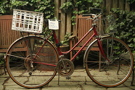 close to home, i decided to pay a visit to the community garden to check up on my plants. i noticed a bike on the side of the road on wendell street with a note taped to the seat. i wasn't able to read the message but i had a suspicion what it might be.