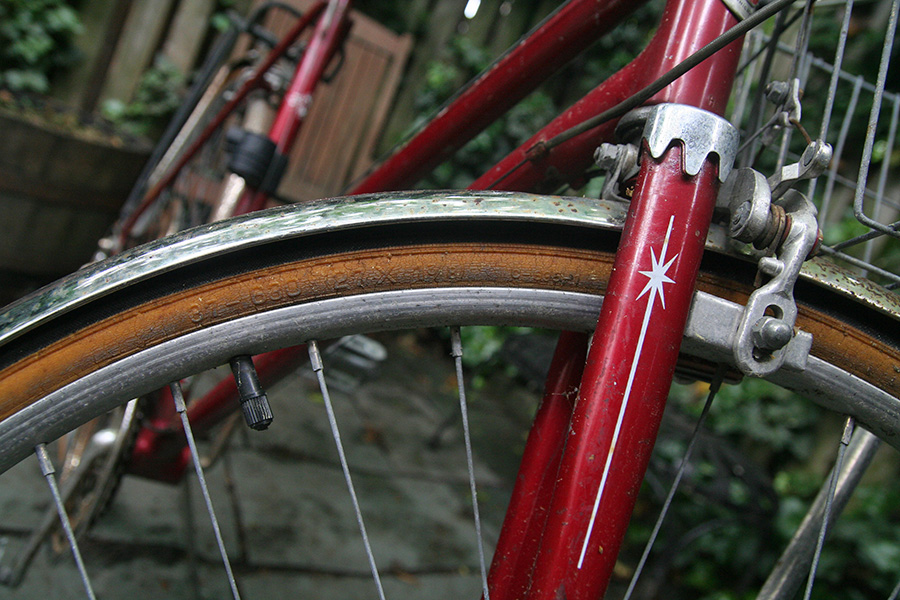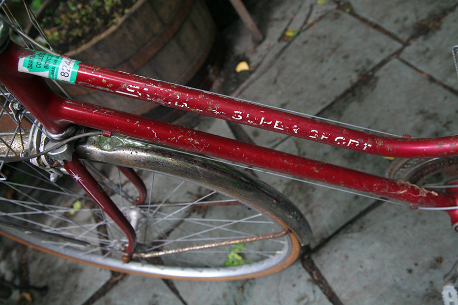 reading the faint letters on the frame, this is a schwinn super sport 10-speed. for some reason the rear fender had more rust than the front fender. i also verified that the wheels are indeed 27x1-3/8".