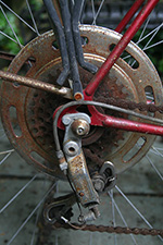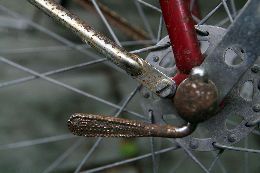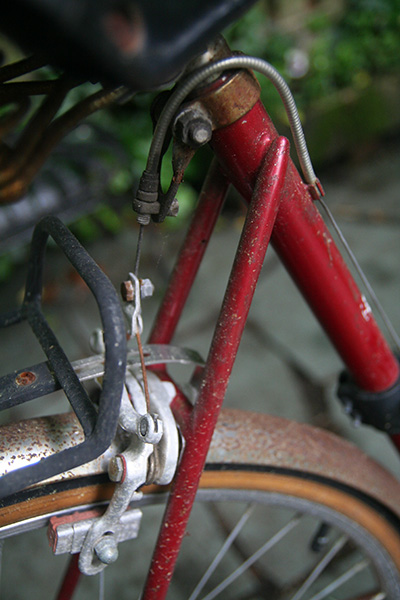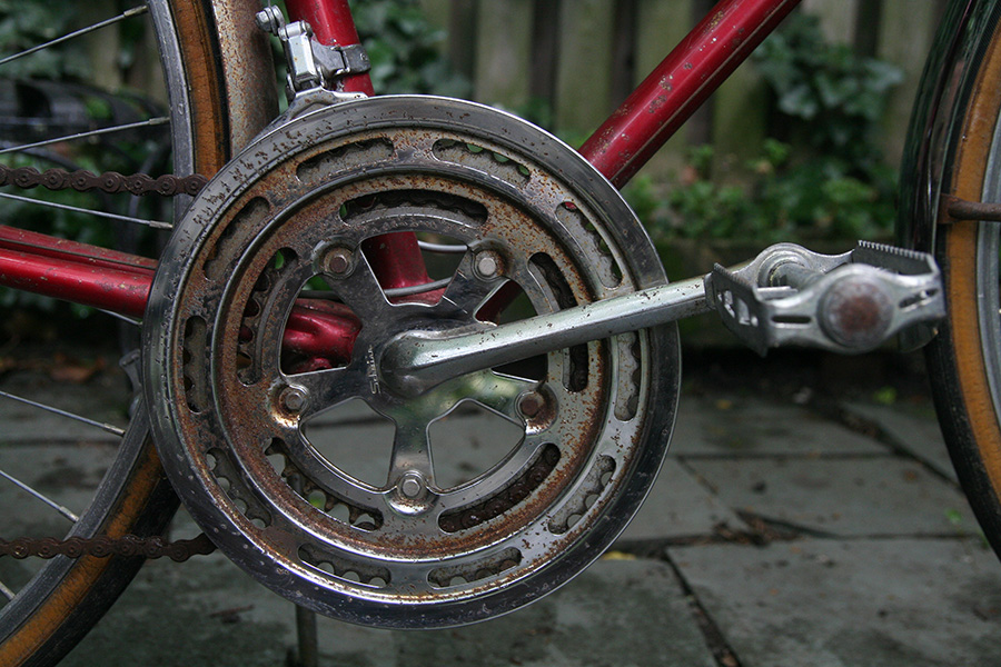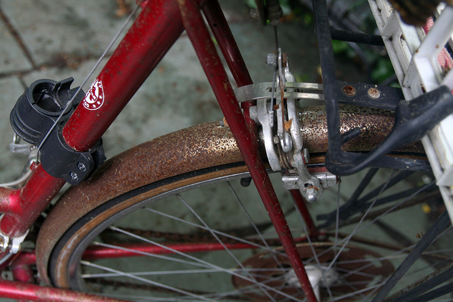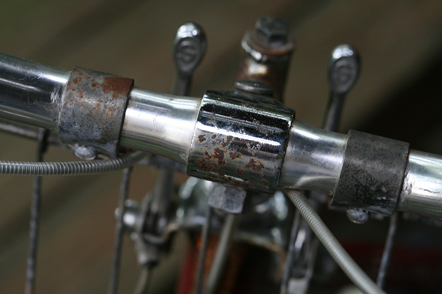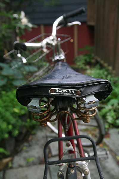i gave my new found schwinn bike a more thorough inspection, and spent some time cleaning the rust off the metal parts.