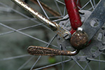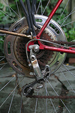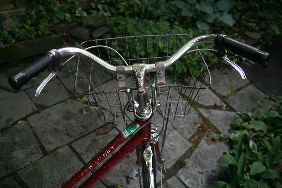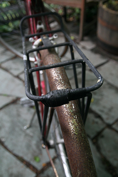 the front derailleur shifts fine but i couldn't work the rear derailleur because the shift cable was seized up. the blackburn rear rack had a big clump of tape on the end - broken rack? but if i'm going to put a rear backet on it, it doesn't matter if the rack isn't pretty.