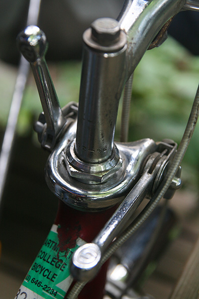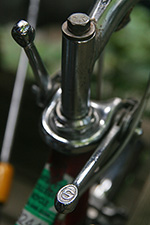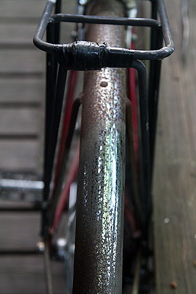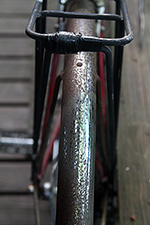 from the serial number stamped onto the head tube i can determine the age of the bike: HG is code for august (H) 1971 (G). so this schwinn super sport is over 40 years old! i suppose i can be a little bit more forgiving when it comes to how much rust it's accumulated over the years.
