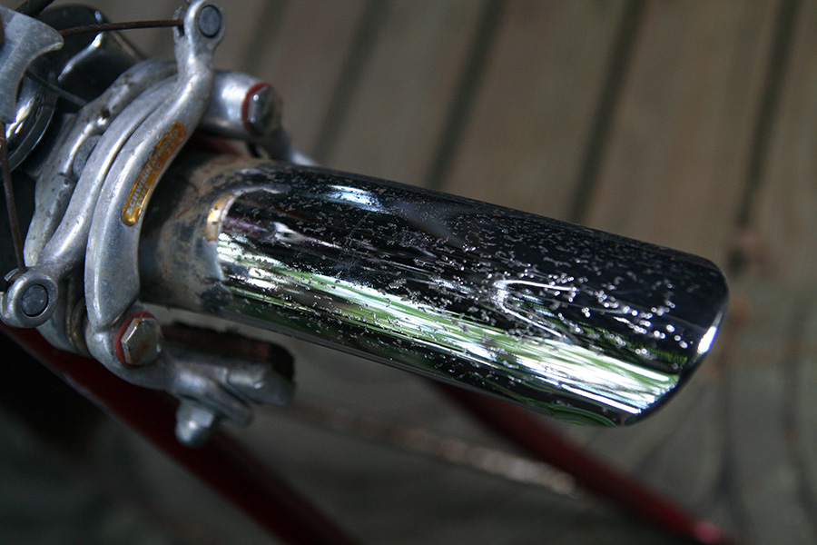 i went ahead and scrubbed the fender with balled up pieces of aluminum. although i was able to restore the surface to a shine, the pitting on the chrome is just too much and this fender will never look like new. all i can do is clean it up to the best of my ability, maybe wax it to prevent future rust, and then use it as a beater bike. definitely not a bike anyone would want to steal if i left it outside.