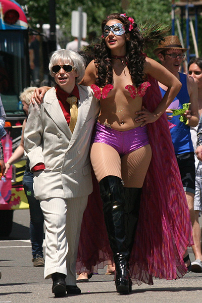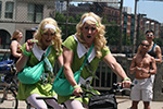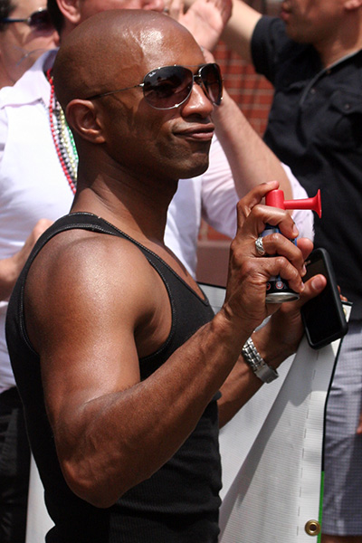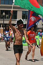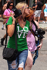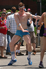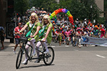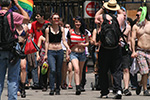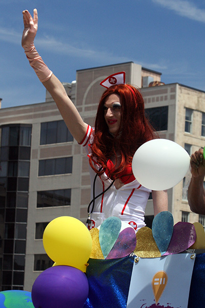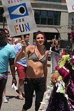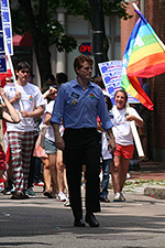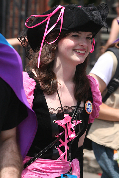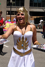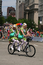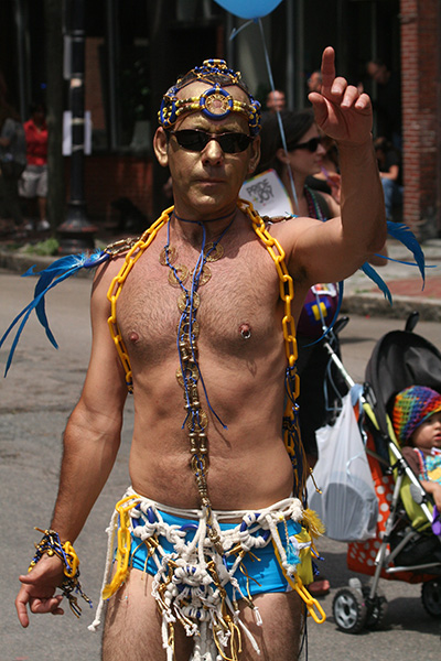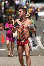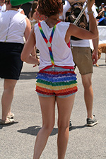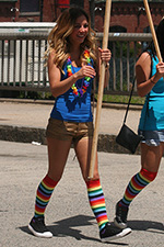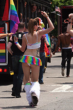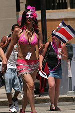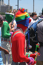 as far as pride marches go, this one was okay. i figured with the nicer weather there'd be more spectacles, but it was pretty tame compared to years past. even the last 2 years with the rain, that was more interesting as both parade participants and goers used creative ways to fight the elements. maybe it's still the economy, but i didn't see any crazy floats, or stereo trucks. because i was on the ground level and close to the beginning of the procession, i did pick up a lot of beads though, the one concession.