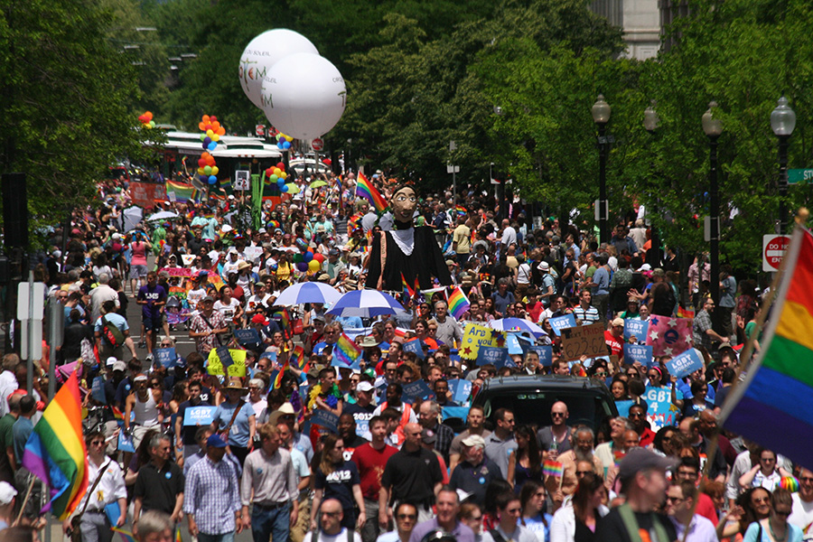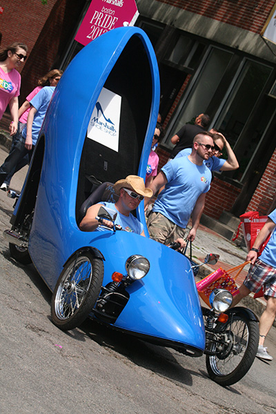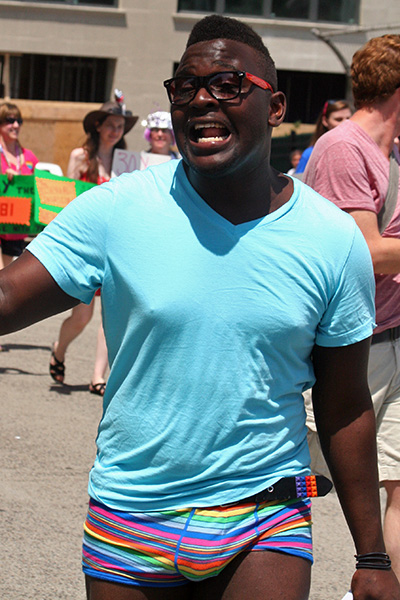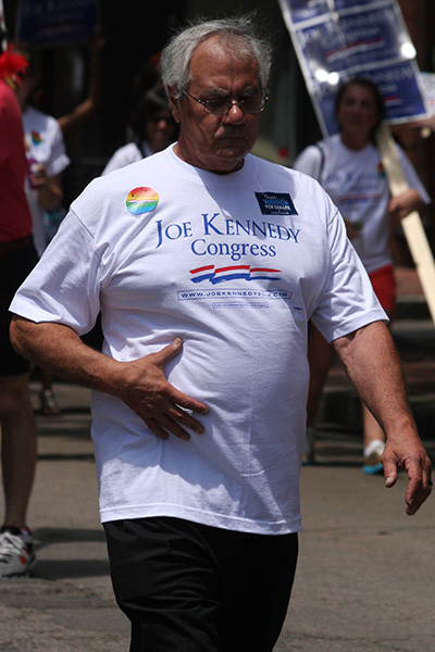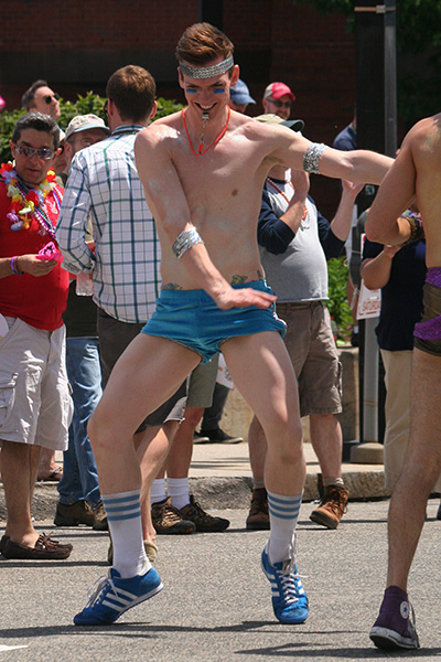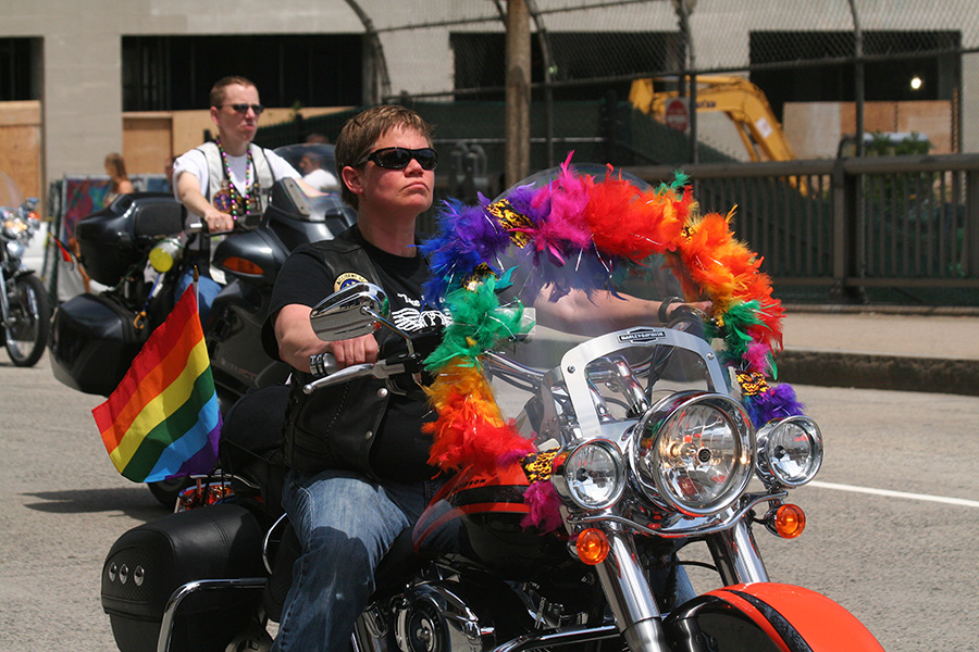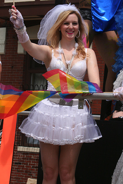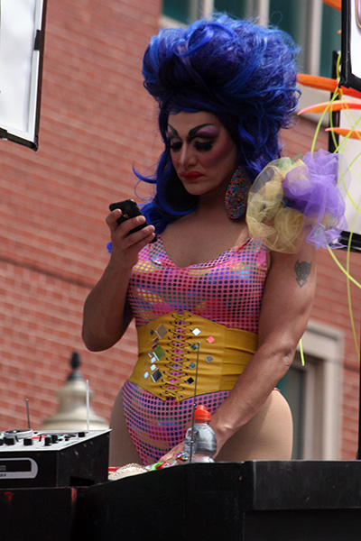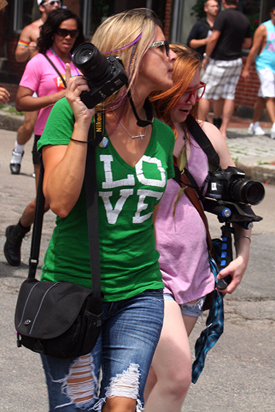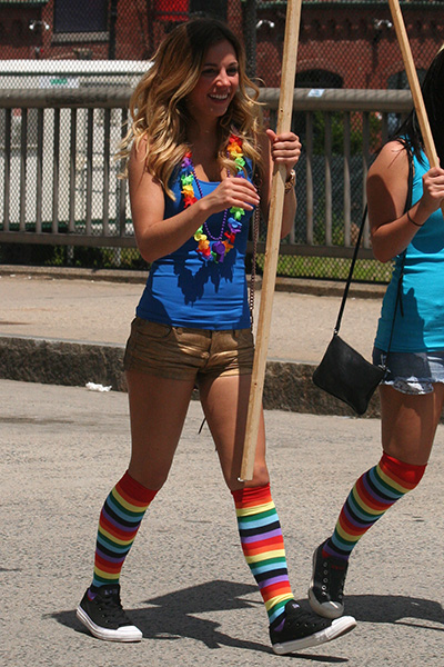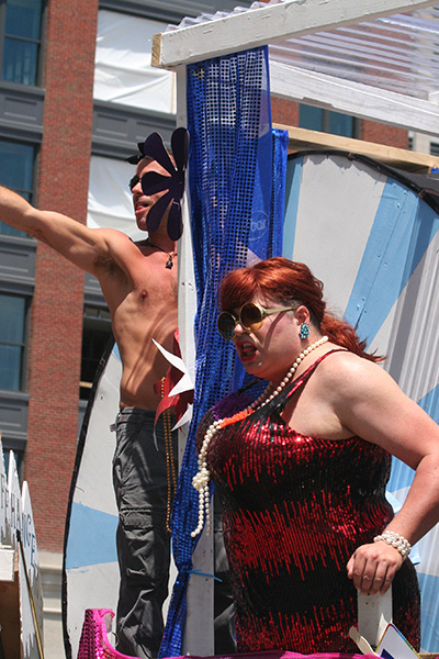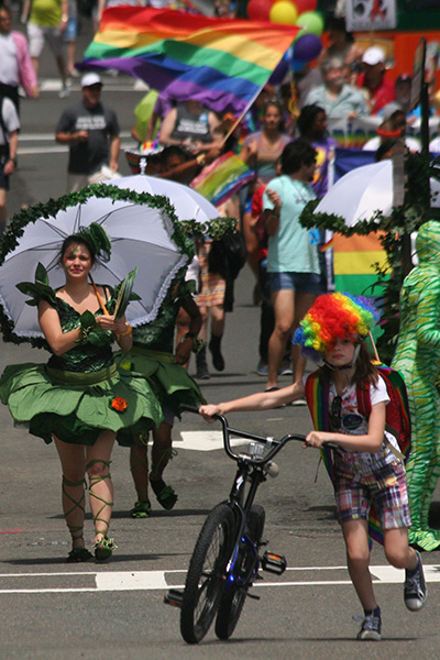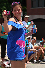 the parade has been rained on twice in a row, but today the weather was parade perfect. i was standing on the eastern side of the bridge but decided to move across the street to the western side get a better angle. the noon day sun was perfectly shining on the north-south clarendon street. as more people started to arrive, i was flanked on my right side by an old lesbian couple with a brood of kids, and on my left side by a hipster gay boy and his beard who brought along a mean-looking but docile pitbull.
