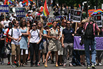 anyway, i was already planning on going down to boston this morning to pick up a few things from haymarket. but when i realized last night that the pride march was actually happening today, my plan changed. i'd see the parade first, and then pay a visit to haymarket on my way back home. the route changed this year, starting from copley square, down clarendon, across tremont, up berkeley, and towards city hall via the state house. this route is actually more similar to the original route, when the parade would snake through the south end.