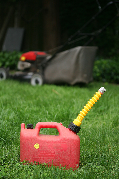 around noontime i rode the motorcycle to belmont, where i had the whole back lawn to mow. i strapped the empty gas container to the back of my motorcycle and went to the belmont library to get a knitting book for my mother. i parked out on the street because i didn't want anyone to get nervous with the gas can on my motorcycle. across the street was a self-service mobile gas station and i bought a gallon of gasoline.