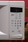 LJ was gone by the time i woke up. immediately i noticed something was off in the kitchen. the clock on the microwave was dead. did the kitchen circuit breaker switch off? that occasionally happens when there are too many kitchen appliances running simultaneously. or was it a general blackout? i looked around and saw that the clock was still working in the living room. so maybe that meant it was just isolated to the kitchen. but when i looked at my stereo above the cabinet, it was still on. that had me confused. so i took a closer look to see why the microwave wasn't working. i saw that it was unplugged. not just the microwave, but the whole power strip, which also runs the filter for one of my fish tanks. when i plugged it back it, that's when i noticed something weird: the microwave turned on on its own! when i hit the door button to make it stop, the button didn't work. in fact, it felt loose, like it was broken. i unplugged the microwave. i tried to pry open the door, but microwaves are built so you can't do that (wouldn't want to microwave with the door open). that when i noticed a plastic bracket on the table, probably some part of the door that broke off.