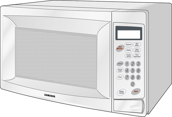 the samsung MW830WA, 800 watts 0.8 cubic ft with a button-activated door release and a handy 1-minute instant cook button. i didn't think i had any sentimental attachment to this microwave, but samsung doesn't make these anymore (go figure, they're spending their R&D money on fancy phones and flat screen televisions), and now that it's gone, i'm kind of sad. this microwave survived 10 years without mishap; LJ hasn't even been here for a week but that was enough time for her to kill it. what will she destroy next? i definitely don't regret charging her a little more in rent, but that small addition won't cover the cost of a brand new microwave (not a good one anyway; i'll have to buy used or go for a cheap one).