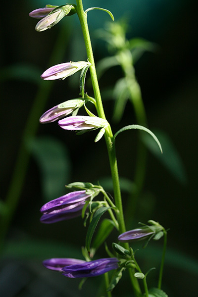 sugar snap peas are going strong, with plants in raised beds 1 through 4. they're tall climbers and we don't have enough trellis space so once they reach a certain height they collapse on themselves. i eat a couple of peas every time i go outside. another snapdragon has bloomed, and as i suspected, they're white flowers this time. i keep on wondering if all the new snapdragons i planted this year will survive into next year; if we have another mild winter, maybe they will. at least one bellflower has begun to bloom. and who knew peony leaves are so delicate? stuck flower petals left water damages on the leaves. i also know that they get some powdery mildew at the end of the season from the nearby norwegian maple.