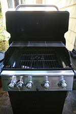 after dinner we went outside the clean the grill, but by then it had already cooled down so it was harder to scrub off the food residue. we might try to put down some aluminum foil at the very bottom of the grill so oil drips will land on that for easy clean-up afterwards. on our old grill we never bothered to clean it; food would fall between the cracks and we'd just let it burn.