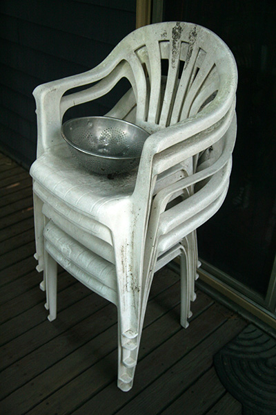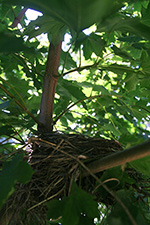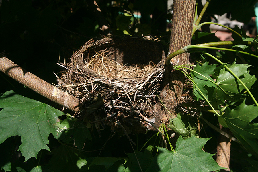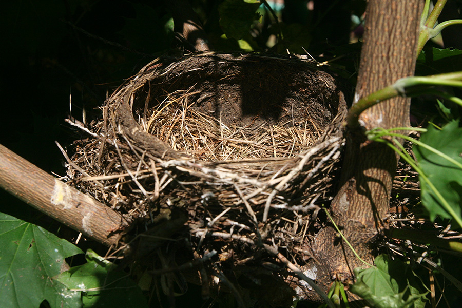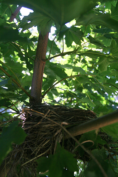 i managed to down a few good sized branches, including the one that had the bird nest. robins don't reuse their nests so i didn't feel guilty cutting it down. the nest itself was a feat of engineering marvel, constructed out of mostly salt marsh grass and dried mud, a perfectly shaped bowl. straws were intertwined around the branches so it was virtually impossible for the nest to fall out of a tree (except through human intervention of course). my only regret is we didn't find the nest early enough to get some photos of the blue eggs. i could've taken some photos of the hatchlings but they're ugly and i didn't want to get attacked by protective bird parents.
