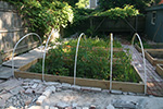 while we were waiting i went with my father to deliver some dinner to my great uncle at his place next door. i got to see the progress of the backyard garden. the plants growing in the makeshift green house did the best. one main problem is the terrible soil condition, dry and crumbling with very little organic matter. maybe if we built green houses for all 5 remaining raised beds they might do better (plus the addition of some soil additives like humus and manure).