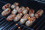 back in belmont, while my mother was making kimchi rice in the kitchen, my father and i were outside breaking in the new grill with some italian sausages. he didn't bother to preheat (is it really necessary?) and just added the sausages right away to the grill. nothing happened at first as the temperature was climbing, but once it reached 350°F, the sausages began to release their juices and there was the sound of sizzling as small flames licked the links. we're so used to our old barbecue grill that it didn't seem right that there wasn't huge flare ups for that upside down flame broiled taste.