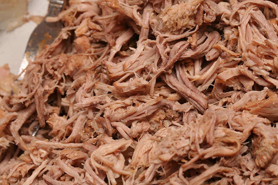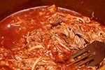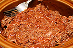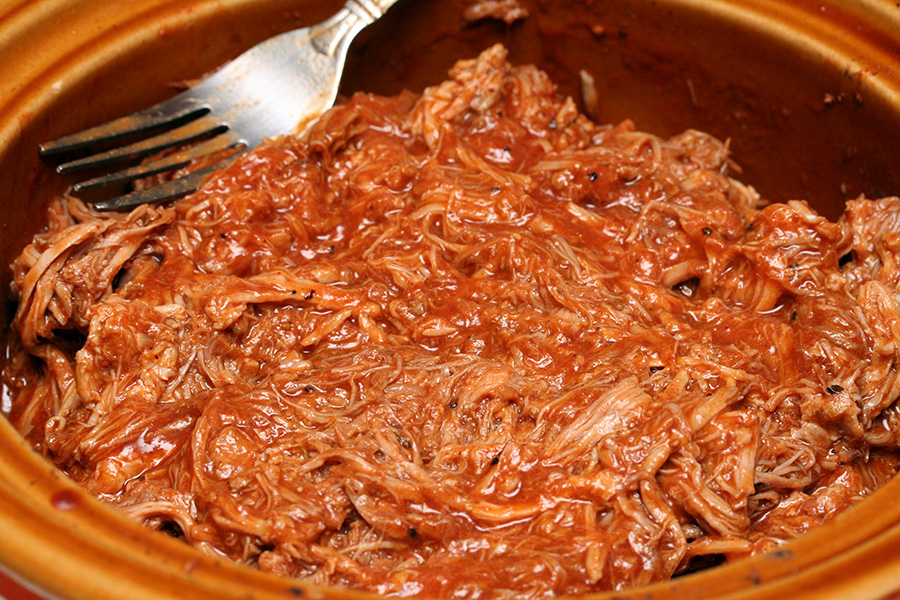 i finally stopped the crock pot at 6:00, after 8 hours of slow cooking. the pork was tender enough that it crumbled when i scooped them out into a bowl for shredding. once properly shredded, the pork went back into the crock pot, along with: 2 18 oz. bottles of stubb's original barbecue sauce, 1 cup of rice vinegar, and 1/2 cup of hot sauce. i like my sauce tangy and spicy. one of these days i'll make my own barbecue sauce instead of buying ready-made.