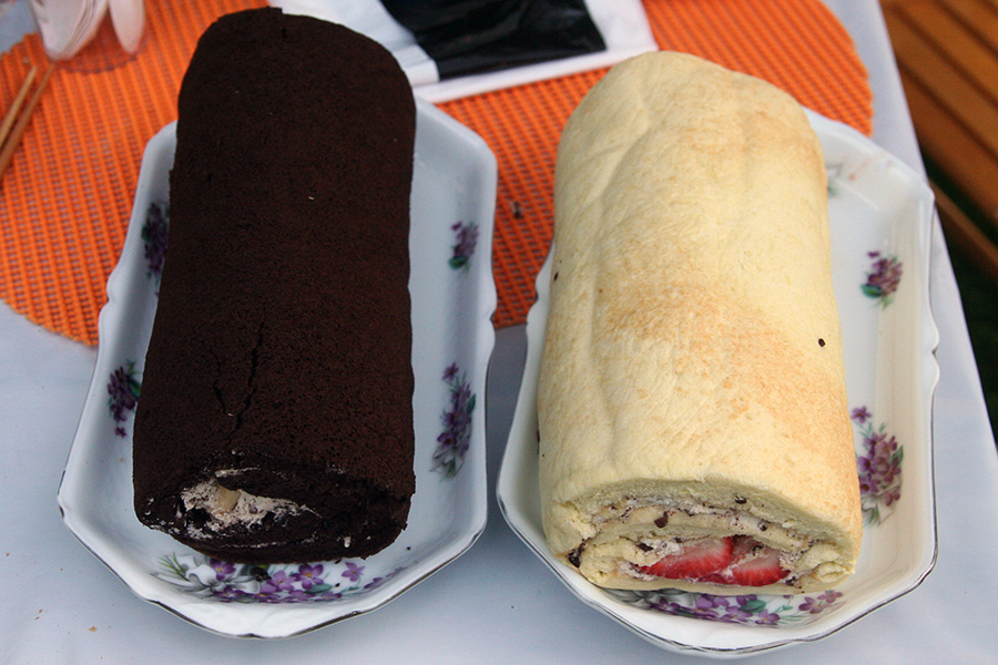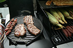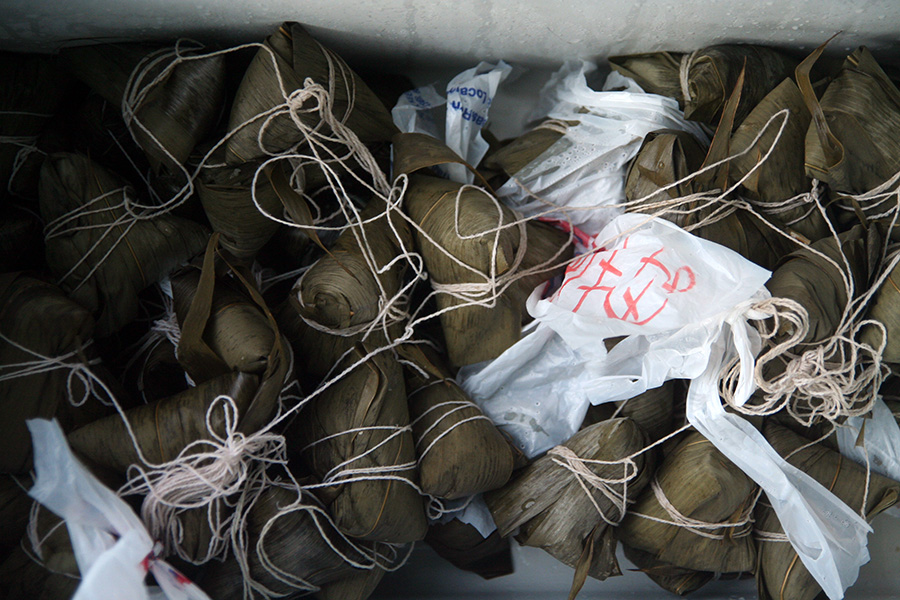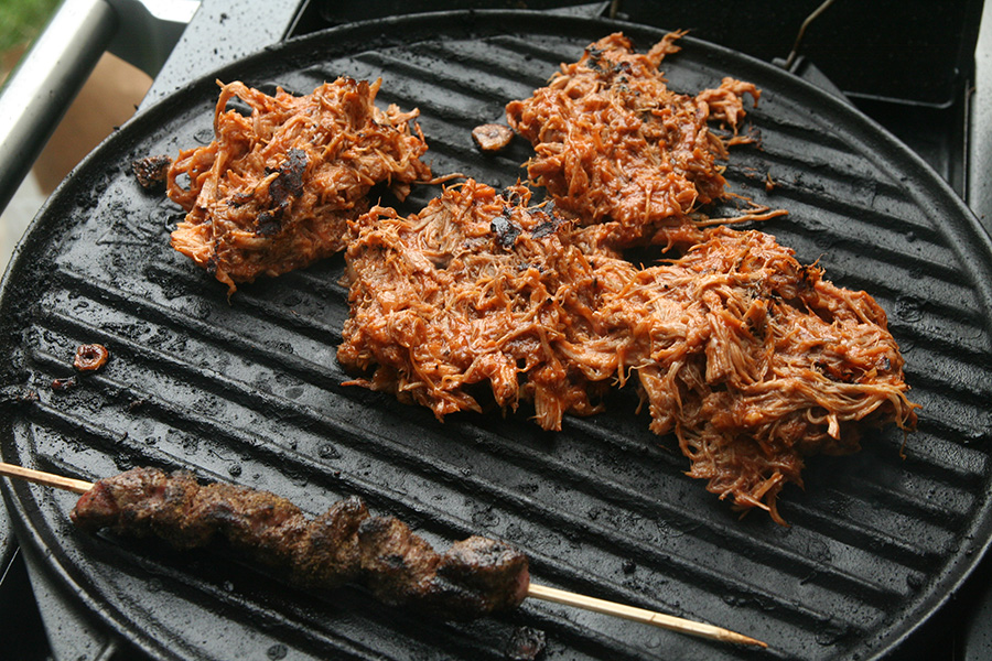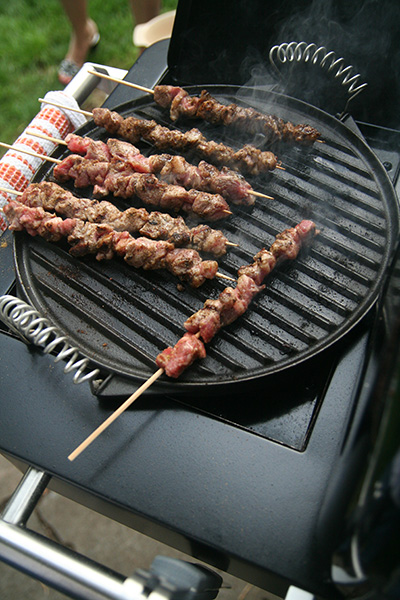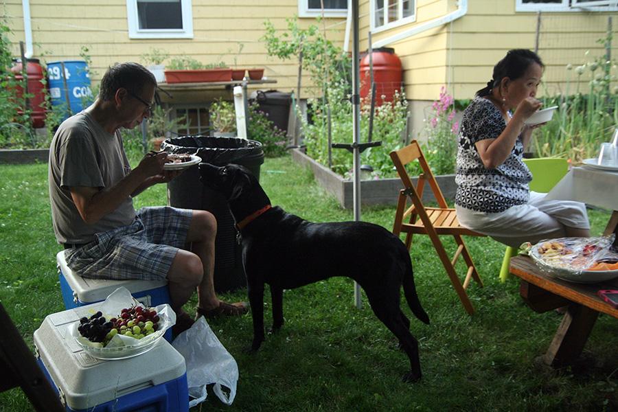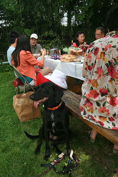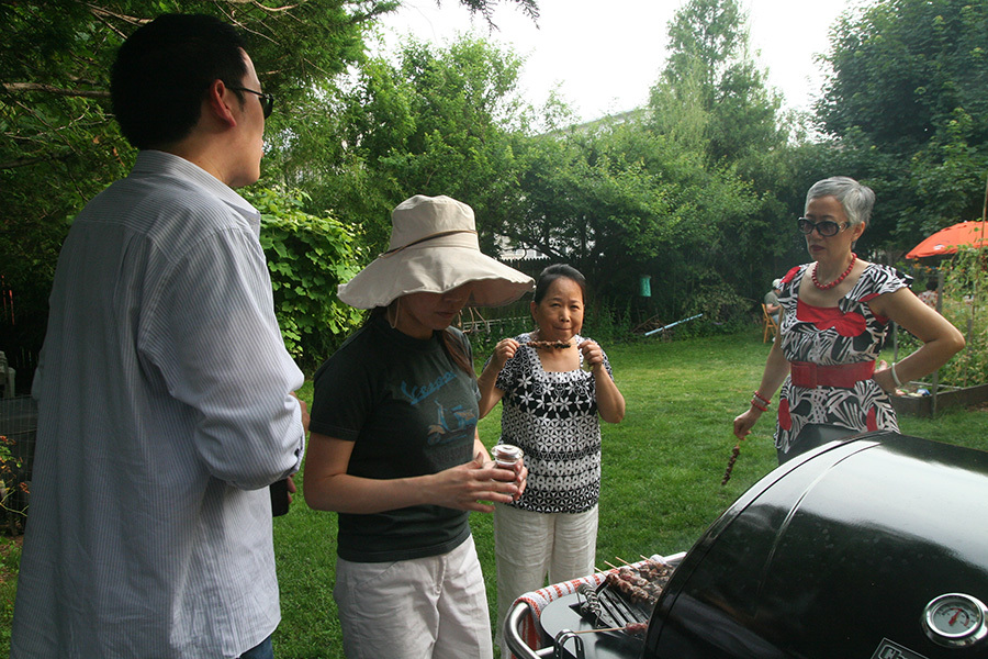 i ended up working the barbecue along with jack and his girlfriend, so we three probably ate the least. they were cooking xinjiang kabobs and steaks on the griddle while i was in charge of the barbecued corn. i also had a foiled packet of previously-soaked frozen mesquite wood chips but they never smoked up. because i made pulled pork there was no burgers this time. my mother also made an assortment of chinese zongzi but with so much barbecued foods available, i don't think anyone had any so many took some home afterwards when people started to leave around 9:00.
