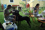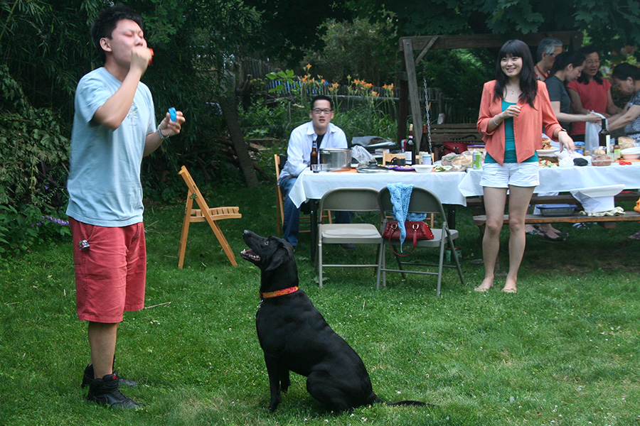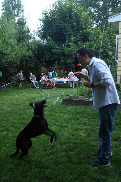 hailey for some reason hates jack and wouldn't stop barking at him. we tried to bribe her with treats and bubbles, which calmed her down for a while, only for her to return to her barking. at one point she even charged at jack, and my sister had to put her inside the house. back outside again, she wandered underneath the table and brushed up against the citronella candle, barking again at jack thinking maybe he was the cause.