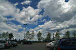 i must not have had enough of the assembly square because i returned again early this afternoon via motorcycle. ac moore to get some black yarn for my godmother (who called me up at 11:30 last night to tell me to get some for her), k-mart some plastic hose attachments and seed packets, and home depot for landscaping fabric and wooden stakes.