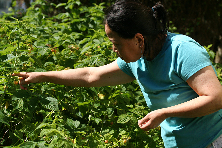 i was outside watering the plants and doing some weeding. my father created a short male-to-male hose adapter so we could attach 2 50 ft long hoses together so i could water all areas of the backyard.