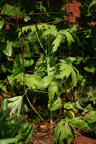 the delphiniums are also doing, planted at the southern edge of my garden with the maximum amount of sun exposure. when i saw them last they were flat looking with drooping leaves; now they're tall but still not a lot of leaves. maybe i'll see some flowers this season?