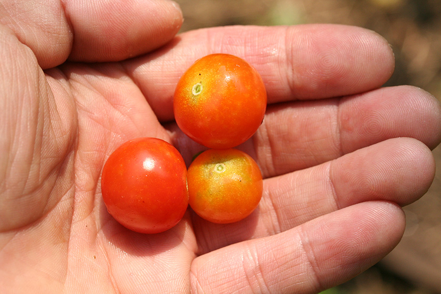 many other plants were bearing fruits. the golden raspberries had so many ripen berries they were already falling to the ground. i ate more than a few dozen berries until i couldn't eat anymore. there were also an assortment of hot peppers, from cayenne to something that looked like a small green bell pepper. i also ate a few red cherry tomatoes, and there were a few green regular-sized tomatoes (maybe they'll be ready in 2 weeks?).