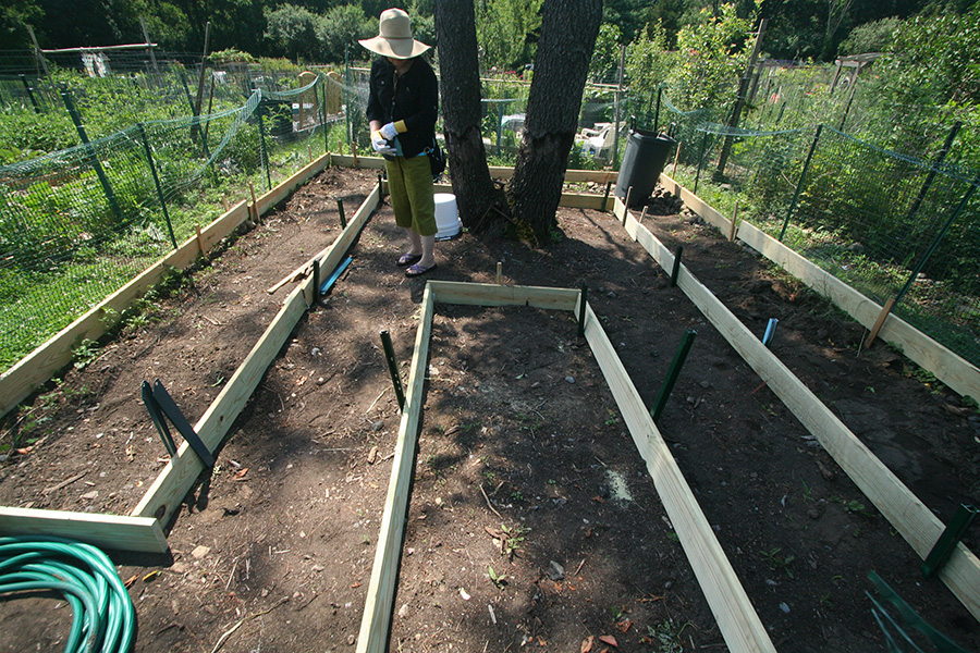 we finished around 1:00 although it felt a lot longer. the one thing i noticed was now the shadow was on the eastern side of the plot, leaving the western side sunny once more. the shadow actually moves pretty fast, and other than the hour or two around noontime, the plot gets maximum sun all other times. contrary to conventional wisdom, noontime is also the best time to come work in the garden apparently, because of shade cover in our plot.