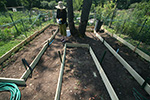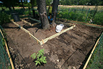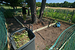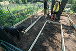 my mother figured we'd be planting today but i was more realistic. my father asked me to swap out all the aluminum stakes with wooden ones (moving the metal stakes to the outer edges) as a safety precaution. after i did that, i began tilling the soil, which my mother was already doing, pulling up rocks as big as oranges. those we piled along the sloping southwestern corner, or lined them up against the outer borders of the plot (where there are still some gaps).