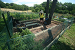 while my mother and i worked in our garden plot, my sister took hailey on a walk onto the forest trail of rock meadow. i'd never been to the garden around noontime, so was dismayed to find so much of our plot eclipsed by the shadow of the black cherry tree. basically the entire western half of the plot was in shadows. the only good thing was it provided some good shade on this hot day and felt pretty nice. the bit of garden on the southern side was the only part that gets sun the entire day.